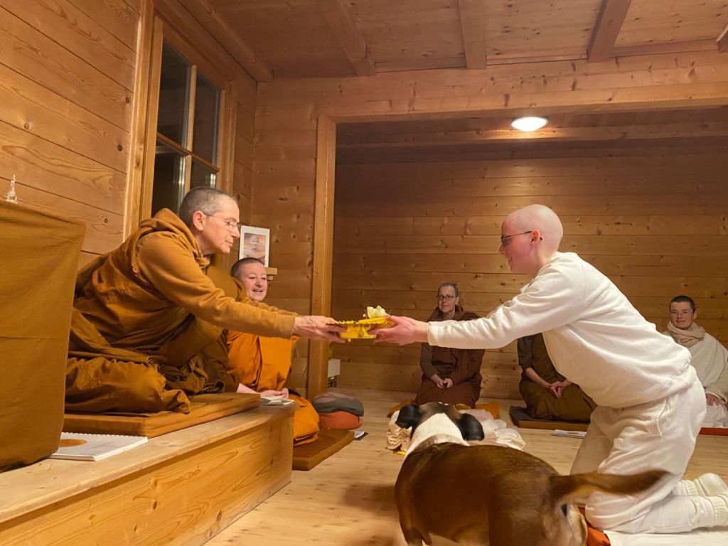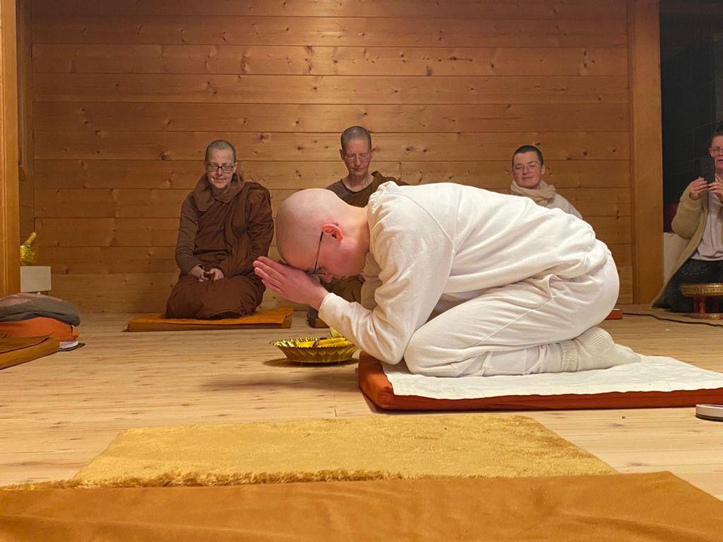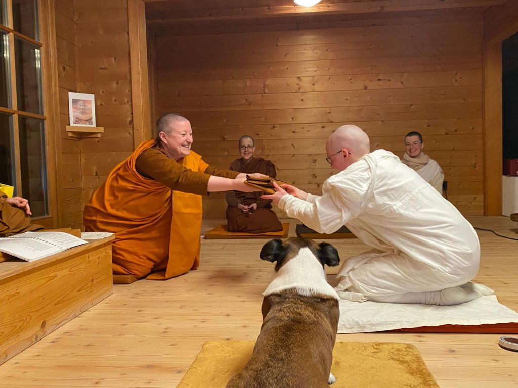 Samstag steht bereits das nächste Highlight fest: um 15 Uhr wird Kevali zur Samaneri geweiht. Wer an diesem schönen Ereignis via Zoom teilnehmen möchte, kann einfach bis Samstag 10 Uhr an folgende Adresse schreiben: Anenja.vihara@outlook.com. Bitte habt Verständnis, dass nach 11 Uhr das Büro nicht mehr besetzt ist und eingehende Mails nicht mehr gesehen werden.