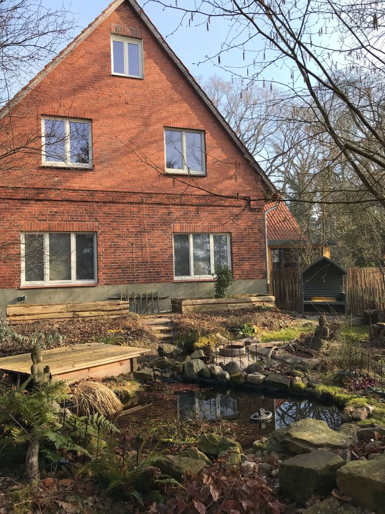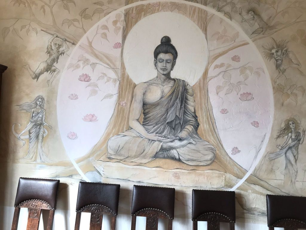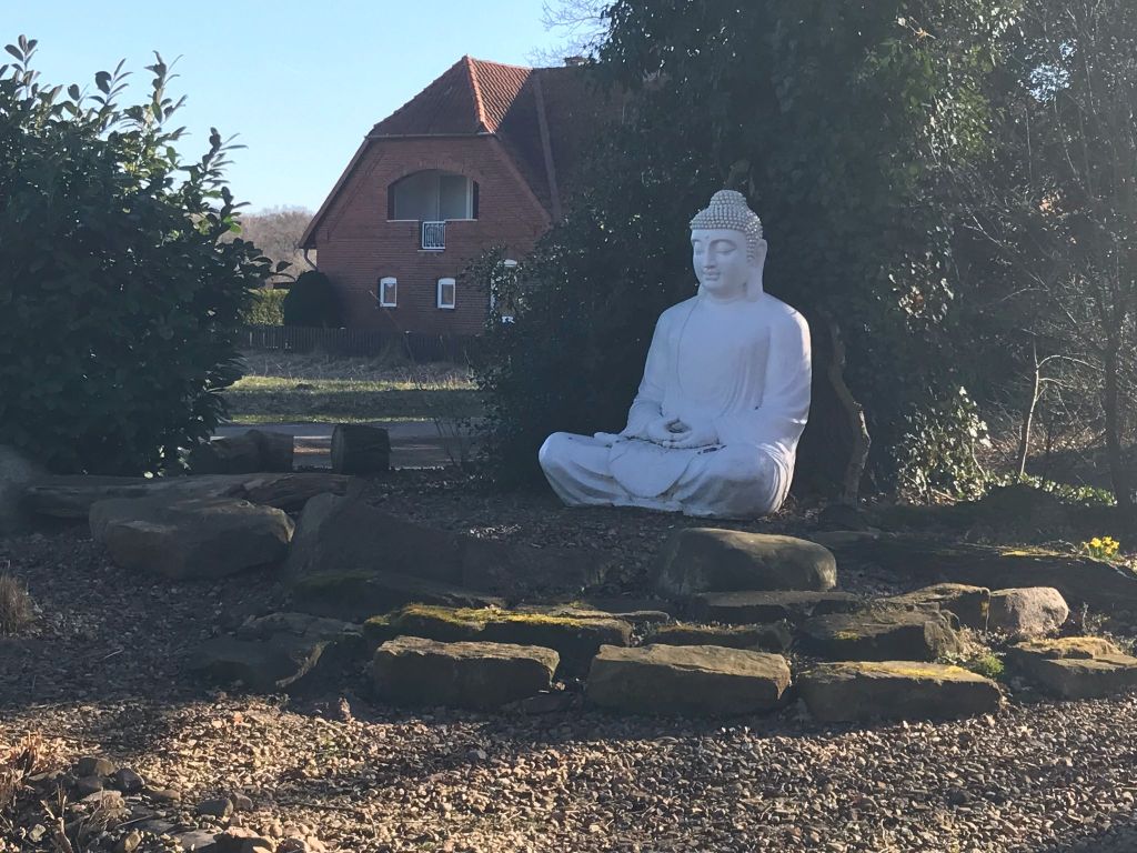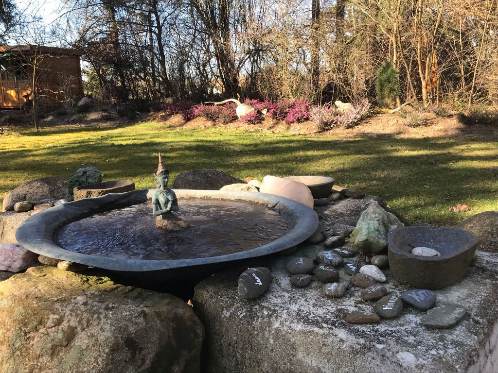 Aber nicht nur der Garten, auch das Klostergebäude wurde liebevoll gestaltet. Wer würde ahnen, dass dieses Haus vor 10 Jahren als Abbruchhaus günstig gekauft und jahrelang renoviert wurde. Nun verfügt es nicht nur über eine funktionelle Infrastruktur und schöne Räume, sondern auch über eine atemberaubende Meditationshalle.